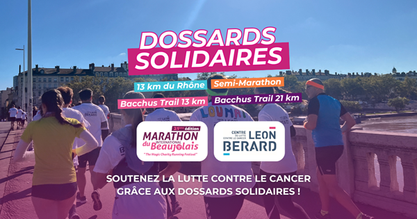 Les parcours 13 et 21 km route ou trail et le parcours Marathon sont complets ! La seule manière de prendre le départ les 22 ou 23 novembre prochains est de réserver votre dossard solidaire avec le Centre Léon Bérard.