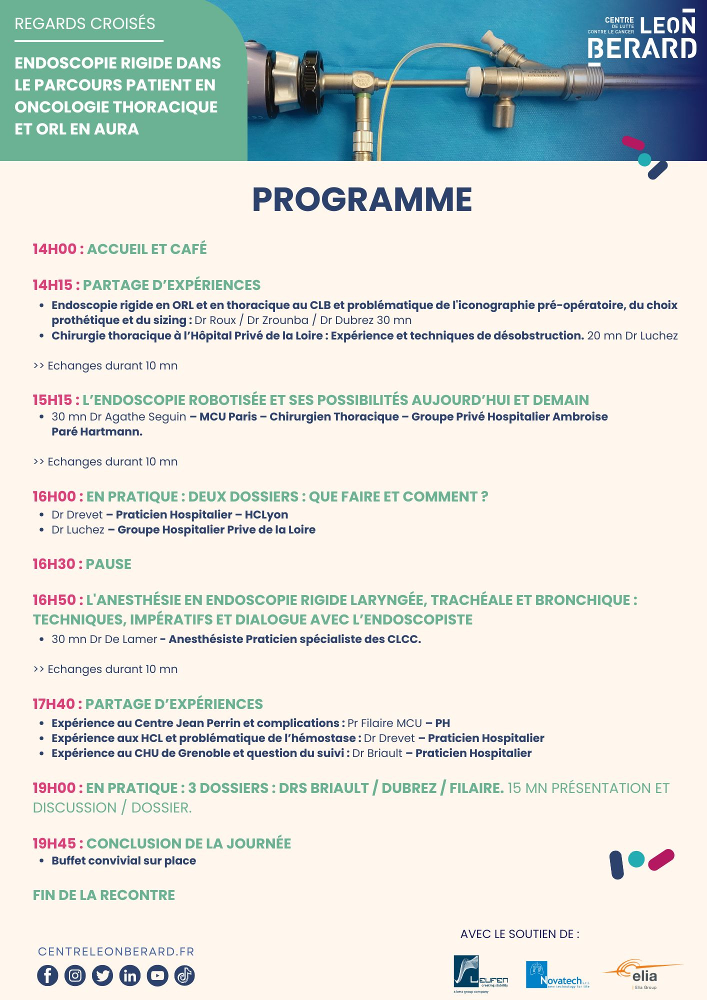 Nous vous donnons rendez-vous le 20 février en salle Oncora du Centre Léon Bérard de 14h à 20h30.