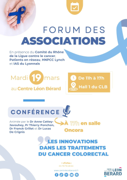 - Conférence à 17h en salle Oncora : "Les innovations dans les traitements du cancer colorectal"